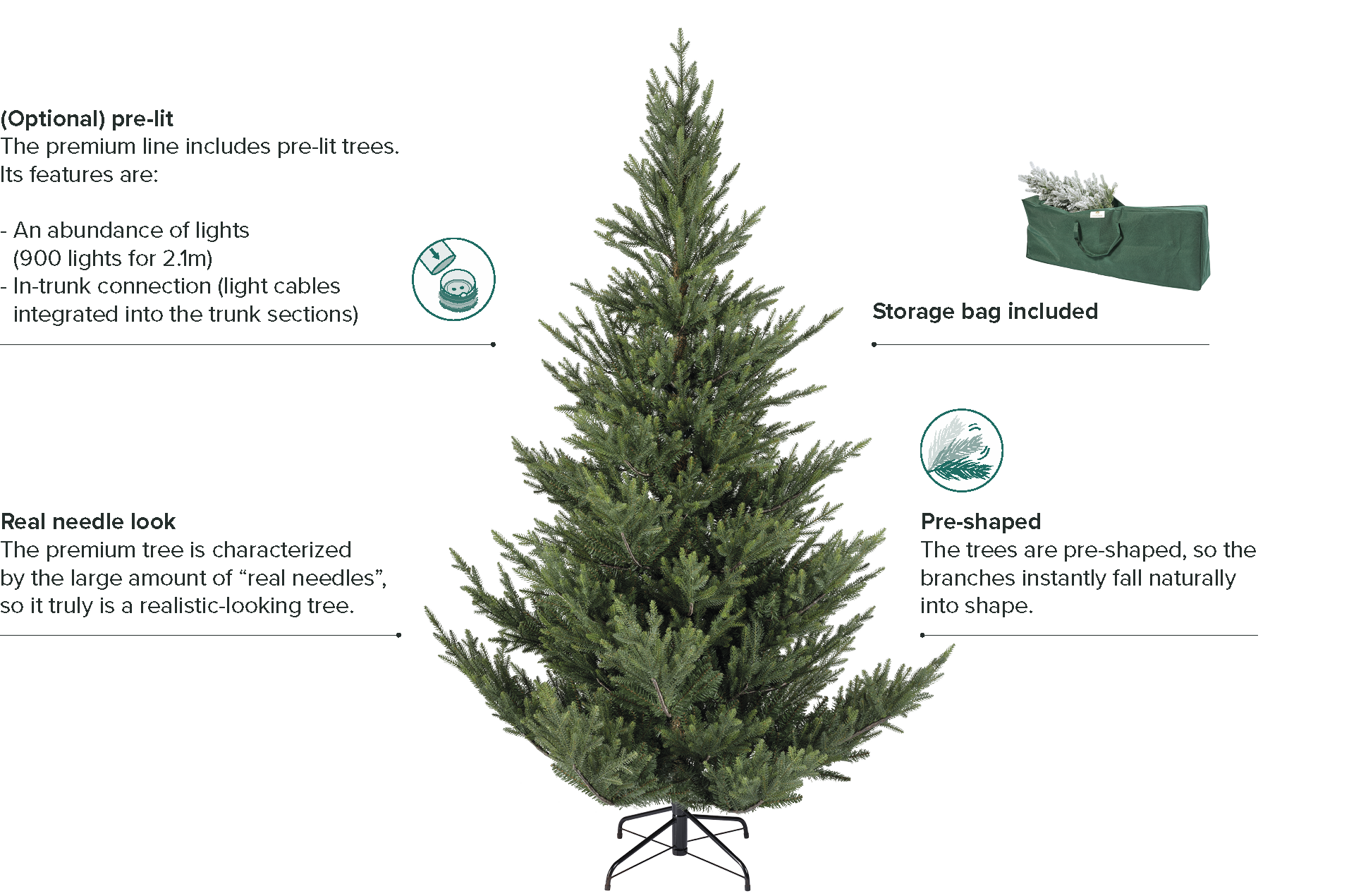 The trees combine a natural look with ultimate ease of use. So you can easily create the perfect Christmas atmosphere.