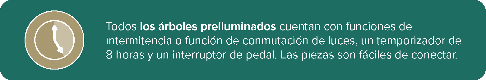 La iluminación LED está preinstalada y distribuida uniformemente por todo el árbol, sin cables sueltos.